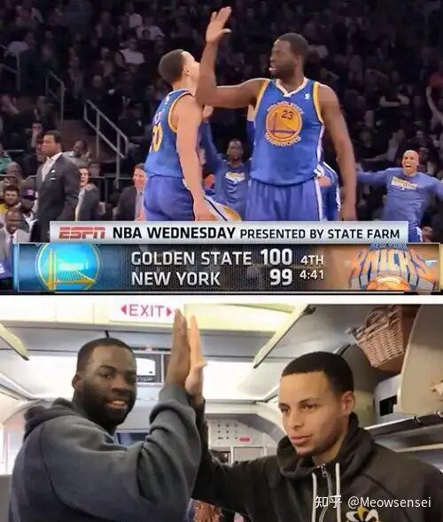 我這邊說兩個細節,賽后更衣室庫里一般是最后一個進來的,他會和每一個球員擊掌,除了波斯特之類的新秀,格林每一次都會站起來和庫里擊掌,格林領導更衣室,然后他帶頭對庫里展示絕對的尊重。另一個細節是,庫里在場上無論是被犯規,還是和人起了沖突,還是慶祝跳舞,大鐵牛永遠會出現在鏡頭里,庫里慶祝時他在邊上等著,發生沖突時他率先沖上去拉架。其實著名的格林裸絞戈貝爾就是因為大鐵牛在背后看以為是戈貝爾拽著湯普森,所以他上去就是鎖死戈貝爾。