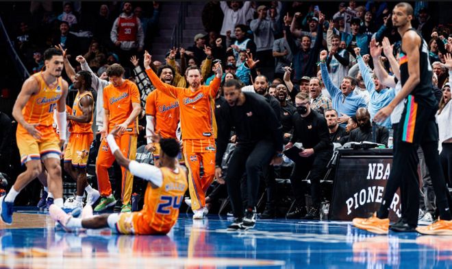 北京時(shí)間2月1日,NBA常規(guī)賽繼續(xù)進(jìn)行,圣安東尼奧馬刺隊(duì)前往客場(chǎng)挑戰(zhàn)夏洛特黃蜂隊(duì)。比賽上來(lái),馬刺隊(duì)三分6連擊,黃蜂隊(duì)也不遑多讓,比賽早早陷入拉鋸戰(zhàn),馬刺隊(duì)首節(jié)領(lǐng)先4分。第二節(jié),場(chǎng)上風(fēng)云突變,馬刺隊(duì)進(jìn)攻斷電,黃蜂隊(duì)單節(jié)凈勝18分,一舉拉開(kāi)比分。易邊再戰(zhàn),黃蜂隊(duì)進(jìn)攻回落,馬刺隊(duì)抓住機(jī)會(huì)瘋狂追分,這種局面持續(xù)到末節(jié),馬刺隊(duì)一度將分差追至2分。但到了決勝時(shí)刻,馬刺隊(duì)三分失準(zhǔn),黃蜂隊(duì)用穩(wěn)健的罰球鎖定勝局。最終,黃蜂隊(duì)以111-106險(xiǎn)勝馬刺隊(duì)。