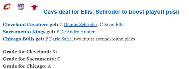 隨后,ESPN為這筆交易進行評級,公牛獲評A,騎士獲評B+,國王的評級最差,只有C,以下是具體解析——