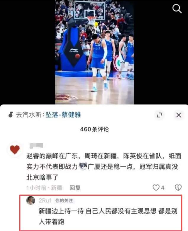 起因是他在社交媒體上與新疆球迷的隔空互懟。當有球迷評論“趙睿巔峰在廣東,周琦在新疆”時,趙睿回應:“新疆邊上待一待,自己人民都沒有主觀思想,都是別人帶著跑?!?/strong>隨后面對“陳盈駿是不是氣你兩罰不中”的調侃,他直接回懟:“回去打馕吧?!?/strong>