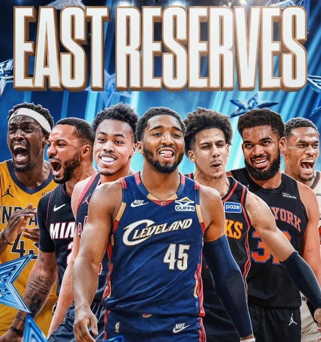 首發(fā)(5人):字母哥(雄鹿)、杰倫·布朗(凱爾特人)、杰倫·布倫森(尼克斯)、坎寧安(活塞)和馬克西(76人);替補(bǔ)(7人):米切爾(騎士)、安東尼·唐斯(尼克斯)、杰倫·約翰遜(老鷹)、西亞卡姆(步行者)、諾曼·鮑威爾(熱火)、斯科蒂·巴恩斯(猛龍)和杰倫·杜倫(活塞)。
