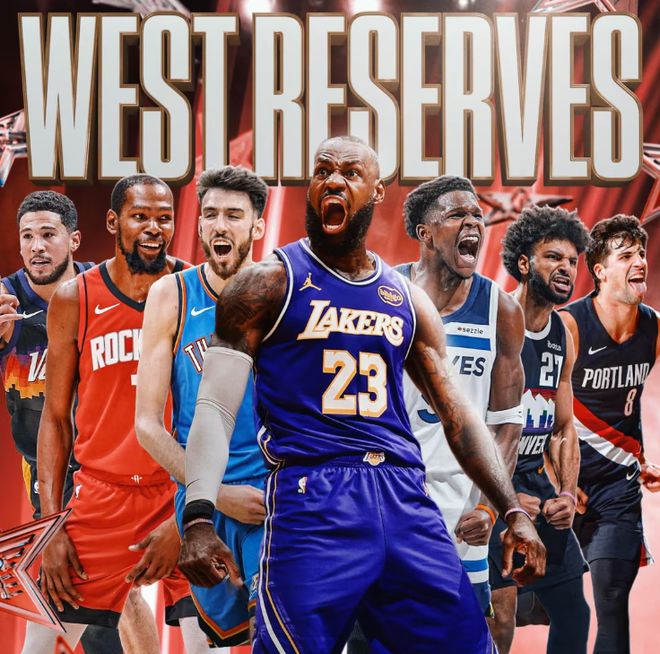 首發(fā)(5人):盧卡·東契奇(湖人)、庫(kù)里(勇士)、亞歷山大(雷霆)、約基奇(掘金)和文班亞馬(馬刺);替補(bǔ)(7人):詹姆斯(湖人)、杜蘭特(火箭)、愛德華茲(森林狼)、德文·布克(太陽(yáng))、切特·霍姆格倫(雷霆)、賈馬爾·穆雷(掘金)和阿夫迪亞(開拓者)。