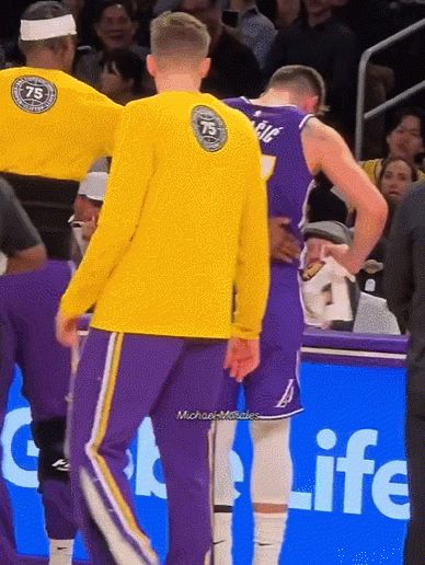 在比賽進行到第二節時刻,東契奇在一次進攻回合后,他出現受傷情況捂著左腿,湖人請求暫停,隨后東契奇被替換下場,也是很快返回更衣室去接受檢查。