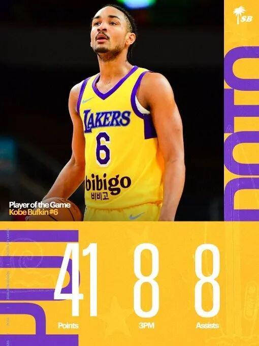 他在湖人打了4場,場均11.2分鐘,3分1.2板,投籃命中率36.4%,3分命中率28.6%。