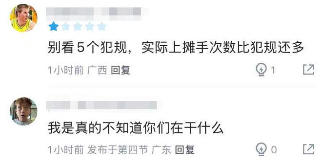 要知道,俱樂部杯的比賽強(qiáng)度遠(yuǎn)不如常規(guī)賽,即便在這樣的情況下,趙巖昊的狀態(tài)都如此低迷,更加令人唏噓的是,趙巖昊這場比賽不僅狀態(tài)差,場上的態(tài)度也是一言難盡,有球迷表示:“別看5個(gè)犯規(guī),實(shí)際上攤手次數(shù)比犯規(guī)還多。”