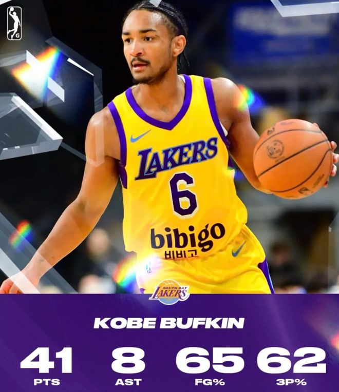 巴夫金的名字確實(shí)叫Kobe,他的父母很喜歡科比。巴夫金此前在NBA發(fā)展聯(lián)盟打球,本賽季為南灣湖人隊(duì)打了14場(chǎng)比賽,場(chǎng)均貢獻(xiàn)接近28分,還曾單場(chǎng)轟下41分8助攻,投籃命中率高達(dá)65%。