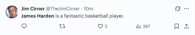 美記Jim Cirner:哈登是一位非常出色的籃球運動員。