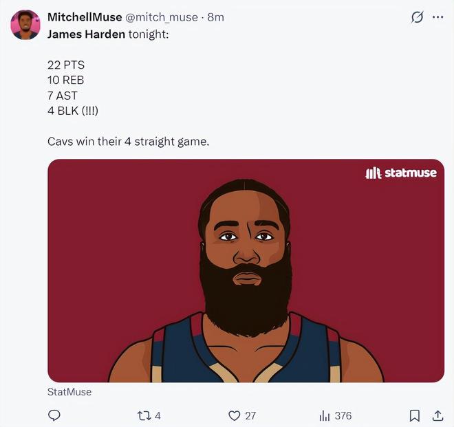 騎士球迷:哈登在我心目中一直以來都是聯盟前五的球員,別管什么獎杯了,他就是一個勇于創新的球員。