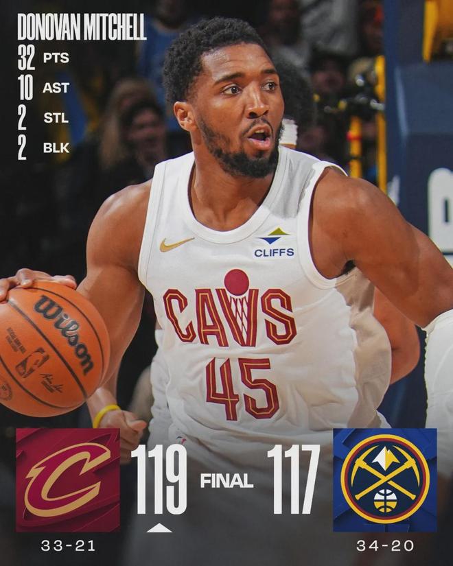 北京時間2月10日,NBA常規賽:騎士客場119-117逆轉掘金。此役過后,騎士33勝21負依然排名東部第四,落后第三的凱爾特人1.5個勝場。掘金34勝20負繼續排名西部第三,落后第二馬刺多達3個勝場,領先第四火箭0.5個勝場。