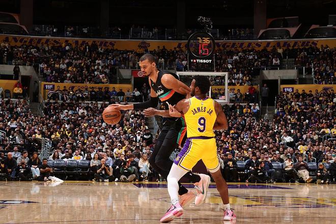 北京時間2月11日,湖人對陣馬刺,半場馬刺84-55領(lǐng)先湖人29分。半場比賽,馬刺球員文班亞馬17投12中,砍下37分8板,正負(fù)值+19。