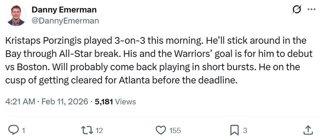 根據(jù)勇士隊(duì)記Danny Emerman報道,球隊(duì)新援波神今早參加了3對3訓(xùn)練,接下來他將繼續(xù)留在灣區(qū),直到全明星周末結(jié)束。