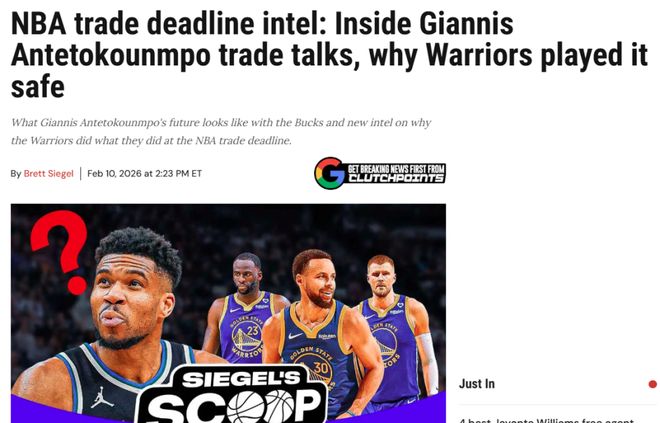 本賽季截止日讓勇士隊看到拿下字母哥的最大可能,他們果斷與雄鹿隊展開多輪談判,與其他試探性報價的球隊不同,勇士隊充滿誠意,直接奉上了一份包括4枚不受保護(hù)首輪簽的報價,立即引起雄鹿隊的關(guān)注,但勇士隊很快發(fā)覺想要短期內(nèi)得到字母哥的可能性微乎其微,轉(zhuǎn)而將目光投向其他B選擇。