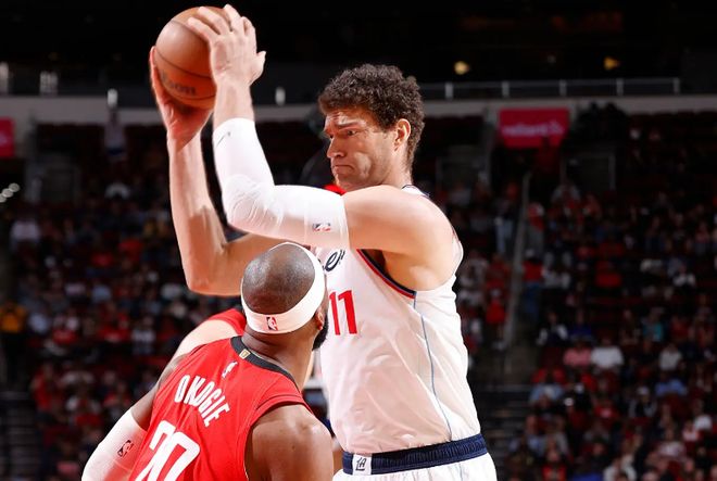 本場比賽中,快船的先發中鋒布魯克-洛佩斯(Brook Lopez)的表現還算是值得肯定的。洛佩斯全場出場37分04秒,投籃10中6,三分線外7中3,得到了15分1籃板3助攻2搶斷2蓋帽的數據,還有1次失誤和1次犯規,正負值為+2。洛佩斯在進攻端確實是展現出了不俗的得分能力,他在外線投籃方面的作用非常突出,他也能夠在對手內線制造一定的威脅,確實是起到了不錯的效果。洛佩斯在防守端在內線防守和護筐方面的表現也是非常出色的。只是問題就在于,洛佩斯在籃板保護方面的表現確實是差了一些,而且這也直接導致了快船全隊的籃板數據非常糟糕。洛佩斯確實是能夠起到一定的效果,但是他在一些方面的短板也是非常明顯的。