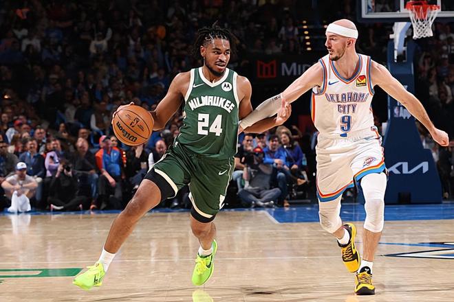 本場比賽中,剛剛在交易截止日前被布魯克林籃網裁掉并且加盟雄鹿的替補后場新援卡姆-托馬斯(Cam Thomas)的表現還是值得肯定的。托馬斯全場出場20分鐘,投籃13中5,三分線外6中1,罰球1中1,得到了12分1籃板2助攻的數據,還有1次失誤和1次犯規,正負值為+15。托馬斯在進攻端雖然外線投籃手感不佳,但是他還是通過中近距離投籃和突破完成了不少得分,為球隊的第二陣容提供了不少的幫助。托馬斯在其他方面的表現也算是中規中矩,在防守端也沒有出現什么太大的問題,也沒有過多的粘球和浪費機會??傮w來看,托馬斯的出場時間并不多,但是他還是起到了第二陣容得分手的作用并且為球隊提供了不小的支持。托馬斯在場上時球隊的局面也是不錯的,這也能夠體現在他較高的正負值上。