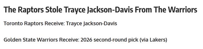 這是一筆典型的低價撿漏型交易,猛龍隊僅花費一枚次輪簽就從勇士拿下TJD這名合格的替補內(nèi)線。