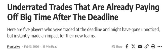 美媒認為5筆被低估的小手筆交易已經(jīng)開始發(fā)力!湖人2換1拿下神射,勇士舊將1換1赴猛龍獲重生,火箭隊錯失補強1號位撿漏良機。