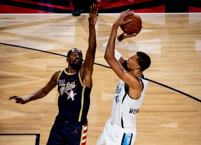 今年全明星大幕落下,和過去幾年相比,本賽季全明星正賽確實(shí)好看不少。一方面是賽制因素,三方陣營(yíng),已經(jīng)囊括聯(lián)盟所有全明星的所有角色,世界隊(duì)有MVP前五的幾位??停吓陉?duì)對(duì)球迷來說是青春,詹杜庫(kù)卡的情懷值拉滿;而最終獲勝捧杯的新星隊(duì),則是聯(lián)盟力捧的新門面。三支球隊(duì),都有努力認(rèn)真打比賽的球星,世界隊(duì)是文班亞馬,老炮隊(duì)是小卡,新星隊(duì)是愛德華茲,最終全明星MVP獎(jiǎng)杯屬于愛德華茲。但實(shí)話實(shí)說,本屆全明星正賽,最不服結(jié)果的一定是文班亞馬,明明拼盡全力,卻沒有得到想要的結(jié)局。