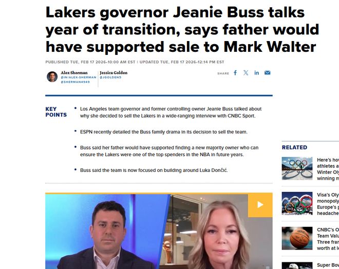 面對這一話題引爆社媒,湖人小老板、總裁珍妮巴斯在接受CNBC采訪時,也公開給出回應。