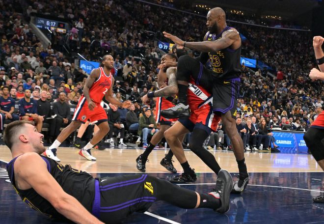 首先,湖人有其他球隊都比不上的最強進攻三人組,東契奇賽季場均32.8分7.7籃板8.5助攻,里夫斯場均25.2分5.1籃板5.7助攻,詹姆斯場均21.7分5.7籃板7.1助攻,三巨頭場均合計79.8分的輸出,如果算上助攻轉化得分,三人組場均可以保證95分的產量(算上給其他人的助攻)。這是湖人最好的一點,然后,就沒有然后了!從詹姆斯說起,詹姆斯剛剛迎來生涯43000分里程碑大關,用美媒話說,這項歷史紀錄,未來50年不會有人能打破。常青樹,不老傳奇,在41歲的年紀還有接近22分的輸出,很強。可是老詹效率下滑太快了!