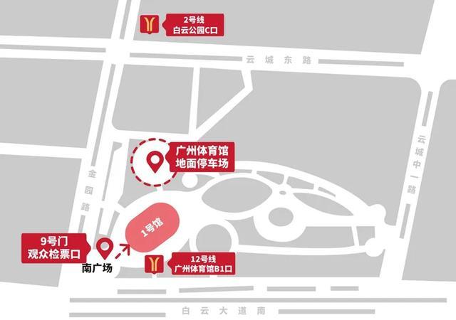 廣州地鐵2號(hào)線:從白云公園站下車,C出口出站后往東前行300米即到達(dá)場館;