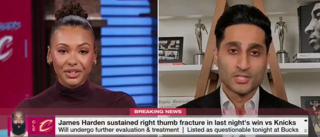 據傷病專家Jeff Stotts分析,拇指由兩節指骨構成,哈登的骨折發生在遠節指骨(拇指尖端)且沒有位移,這是最有利于快速復原的情況,遭遇同類傷勢且未接受手術的球員平均缺席6.5場比賽(約17天)