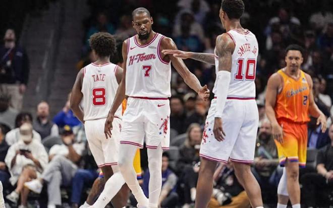 阿門本場因傷缺席,謝波德進入首發!比賽上來,威少狀態神勇,率先取得進球,但杜蘭特、申京手感火熱,內外取分,為火箭取得領先!威少靠著個人能力不斷取分,但國王其他球員卻沒有太多貢獻,火箭多點開花,完全占據了比賽主動,首節拉開11分分差!次節火箭進攻更加犀利,謝波德連中3分,國王則是狀態依舊低迷,德羅贊連連為球隊止血,可火箭進攻完全打開,杜蘭特、小史密斯輪番開火,謝波德更是不可阻擋,火箭單節砍下44分,半場拉開27分分差!