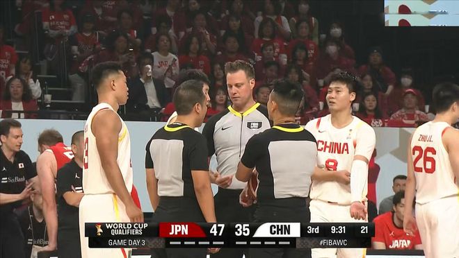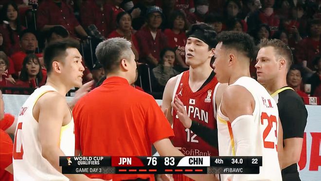次節回來,胡金秋、廖三寧連得四分,眼見中國男籃有起勢的苗頭,桶谷大趕緊請求暫停。渡邊飛勇二次籃板命中,分差再度回到兩位數,郭士強無奈只能叫出暫停。賀希寧三分命中,但是防守端接連出現盯人失誤,最后壓哨時刻再丟籃板,趙睿領到第3次犯規。半場比賽結束,中國男籃落后14分。