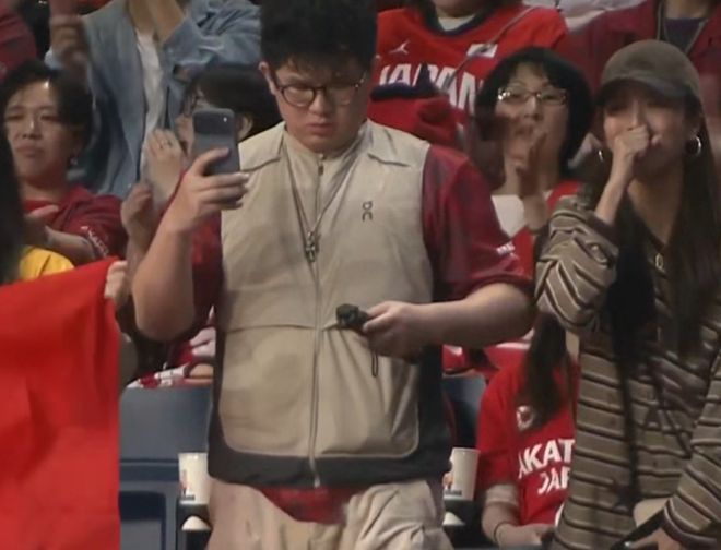 甚至在比賽進行過程中,鏡頭還掃到了,球迷直呼熟悉,直到賽后才敢明確。而從表情來看,整體的過程非常激動,很明顯被中國男籃在下半段的斗志所感染,而且最終的結果還非常圓滿。