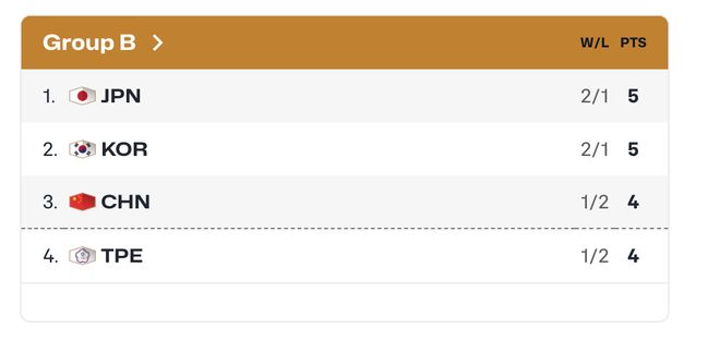 中國隊僅以凈勝分優勢排在小組第三