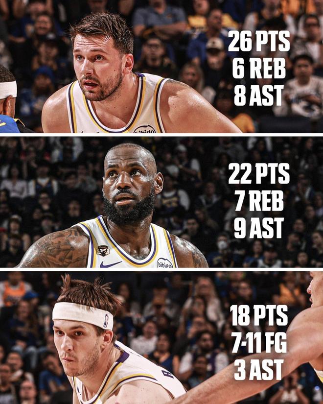 實際上,這場比賽湖人能夠大勝勇士,并且全場壓著勇士打,還真的是多虧了詹姆斯,全場比賽,詹姆斯出戰28分鐘,投籃13中7,三分6中4,得到22分7籃板9助攻1搶斷,他在首節開局就展現必勝的決心,單節4中2拿到6分,第二節更是火力全開,單節6中5拿到14分4籃板2助攻,整個上半場,詹姆斯個人10投7中,三分4中4砍下20分4籃板4助攻,他在進攻端的率頭沖鋒,為湖人奠定了20分的領先優勢,并且在勇士瘋狂追分,東契奇單打上頭的時候,也是詹姆斯站出來幫助球隊穩住節奏,可以說詹姆斯用一場幾乎完美的表現,親手用一場勝利給東契奇慶生。
