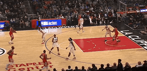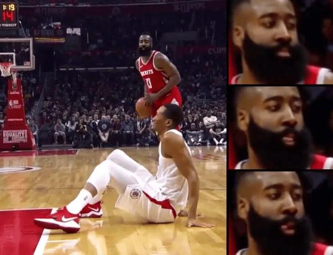 2018年3月1日,客場對陣快船的比賽中,哈登利用變向將約翰遜晃倒在地,但是哈登卻并沒有立刻出手。