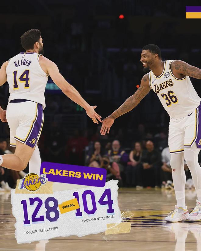 三節戰罷,湖人96-76領先整整20分。詹姆斯前三節11中5得到14分,第四節4中3砍下10分。最后半節雙方換上純替補陣容,全場結束,湖人128-104大勝國王24分,背靠背取得2連勝。東契奇28分5板9助、詹姆斯24分5助2斷。
