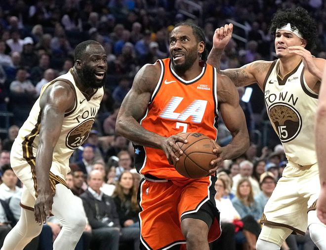 快船客場挑戰(zhàn)勇士,快船是背靠背作戰(zhàn),體力不如勇士,快船方面加蘭復(fù)出,迎來快船生涯首秀,科林斯、比爾缺陣,勇士方面庫里、巴特勒、波津、佩頓、小庫里缺陣,上半場比賽勇士優(yōu)勢(shì)明顯,一度領(lǐng)先17分,半場戰(zhàn)罷領(lǐng)先14分,第三節(jié)快船強(qiáng)勢(shì)反彈,單節(jié)追回12分,三節(jié)戰(zhàn)罷勇士領(lǐng)先2分,第四節(jié)快船延續(xù)了強(qiáng)勢(shì)狀態(tài),他們開局反超比分,一度領(lǐng)先17分,最終114-101擊敗勇士。倫納德14中9(三分6中3)得到23分8板4助2斷,鄧恩10中7得到16分7板7助2斷、馬瑟林13中6得到17分7板,勇士方面波杰姆18中9(三分6中3)得到22分7板3助、霍福德11中5(三分8中4)得到17分6板3助。