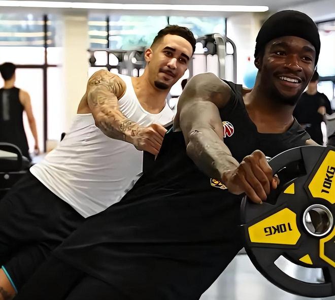 對(duì)比之下,大家可以看到奎因這兩位外援在訓(xùn)練的時(shí)候則是非常搞笑,兩個(gè)人拿著這個(gè)杠鈴居然在做劃船的動(dòng)作,感覺(jué)不像是在訓(xùn)練而是在玩樂(lè)一樣。從這一點(diǎn)也感受得到,外援融入到廣東男籃的體系應(yīng)該是非常好的。大家在隊(duì)內(nèi)的相處非常的開(kāi)心,才會(huì)如此的松弛。