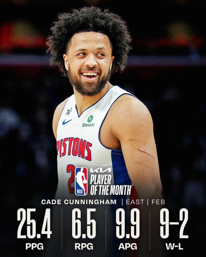 北京時間3月4日,NBA官方公布了2月份的東西部最佳球員,東部方面,坎寧安成功當選,西部的最佳球員則是文班亞馬。