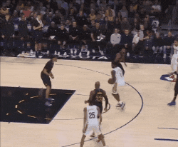 比賽中有一個非常震撼的鏡頭,鵜鶘隊300斤坦克胖虎起飛殺到內線,海斯面對怪物前隊友一點都不虛直接頂上想造進攻犯規。