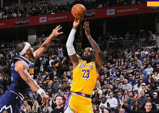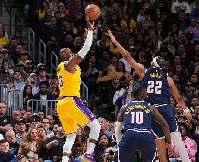 此后一段時間,湖人逐漸找到進攻狀態,但掘金依舊占據主動權,第一節比賽結束,掘金32-22領先湖人10分。次節比賽開始,肯納德的弧頂三分開火一擊命中,幫助湖人先下一城,穆雷左側閃電上籃側身拋投得分,納吉拉出來揚手大號三分球空心命中,穆雷弧頂大號三分發炮也正入網心,海斯禁區吃餅,掄起雙錘毀滅暴扣點燃全場,詹姆斯火速下快攻,猛烈對抗上籃打進還有加罰,又是老詹一個鬼魅殘功搶斷快攻,單手炸裂劈扣打進。不知不覺,老詹的生涯總進球數已經超越了賈巴爾,上升至NBA歷史第一名。此后一段時間,場上局面變數不大,掘金依然保持10來分領先優勢。