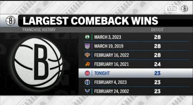 籃網(wǎng)也創(chuàng)造了2023年后隊史最大逆轉