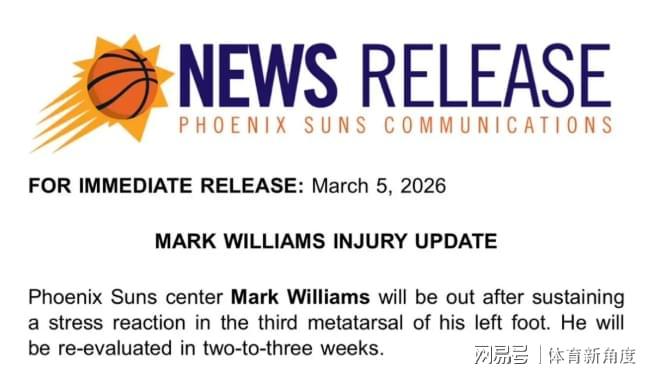 太陽隊官方突然扔出一顆“重磅炸彈”:咱們的主力中鋒馬威,左腳第三跖骨鬧起了“小脾氣”,應力反應來襲,得乖乖休戰2-3周,到時候還得再評估評估能不能上場。