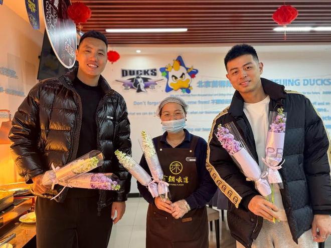 男籃隊員翟曉川、方碩受全隊委托,帶著精心準備的鮮花,走遍俱樂部各個角落,將心意送到每一位服務球隊的女性身邊。無論是堅守崗位、用心烹制每一餐的餐廳服務員,默默耕耘、守護宿舍整潔的保潔阿姨,還是兢兢業業、全力保障球隊運轉的俱樂部女性工作者,都收到了這份特別的祝福。