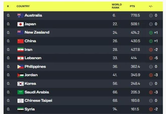 根據國際籃聯公布的榜單來看,中國男籃在亞洲區排名第4,世界排名第26,較上一期的榜單提高了1個位次。在亞洲范圍內排名前三的分別是澳大利亞男籃、日本男籃和新西蘭男籃,韓國男籃僅排在第9位;世界排名前三的國家分別是美國男籃、德國男籃和西班牙男籃,亞洲區第1的澳大利亞男籃排名世界第6。綜合來看這個榜單來看還是比較貼合實際的,中國男籃整體實力雖然不如澳大利亞,但是和日本、新西蘭等國家差距并不是很大,還有很大的進步空間。