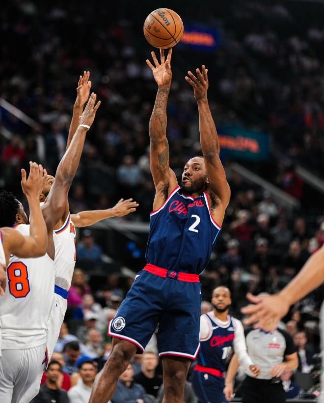 重新回到賽場之后,尼克斯開始在防守端瘋狂夾擊萊昂納德,后者打得非常聰明,并沒有選擇貿然強攻,更多是牽制防守給隊友創造機會,四節戰罷靠著19次出手命中10球的發揮,萊昂納德交出了29分、7個籃板、8次助攻和2次搶斷的全面個人數據,其中連續42場得分20+也刷新了生涯新高。