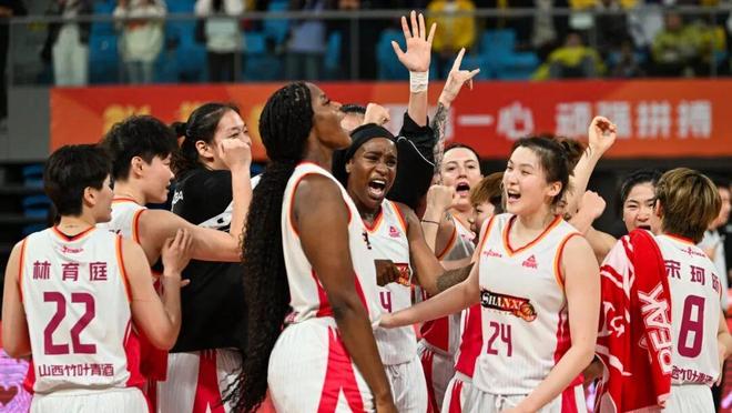 ▲山西女籃姑娘們圍在一起歡呼勝利