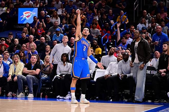 本場比賽中,雷霆的替補后場新援賈里德-麥凱恩(Jared McCain)的表現算得上是非常出色。麥凱恩全場出場21分31秒,投籃7中4,三分線外5中3,罰球2中2,得到了13分1籃板1助攻的數據,沒有失誤和犯規,正負值更是達到了全場最高的+19。麥凱恩在進攻端的出手次數比較有限,但他還是展現出了不俗的投射能力,他也是抓住了有限的機會得到了不少分數,在進攻端起到了很好的效果。麥凱恩在防守端的表現其實也不算糟糕,至少也沒有出現什么太大的問題。麥凱恩在場上時球隊的局面一片大好,這也能夠體現在他超高的正負值上。毫無疑問,麥凱恩的出色表現也為球隊的勝利做出了巨大的貢獻。