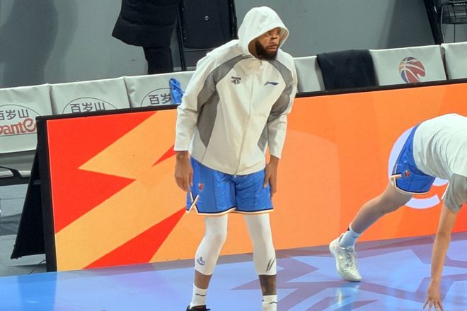 麥基賽前積極進行熱身,為CBA首秀做準備