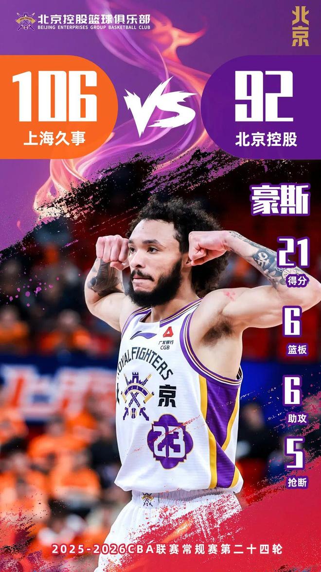 球員新外援小豪斯開場第一次出手就命中三分,為自己的北控生涯開了個好頭。接下來的時間,他在攻防兩端都展現了自己的特點,他的節奏獨特,無論是強殺籃下還是助攻隊友都能把握好時機,全場得到21分6助攻。防守端他不惜體能,努力壓迫對手,貢獻5次搶斷。