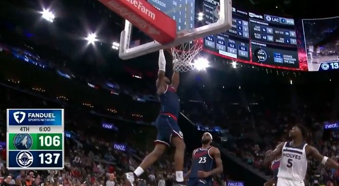 31分鐘暴砍45分5籃板5助攻2搶斷,投籃20中15,三分球9中6,罰球10中9,真實命中率高達92.2%,正負(fù)值高達+41,是快船隊史最高效的一場45+