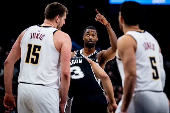 馬刺隊的文班亞馬因傷缺席。主場出賽的馬刺隊開局不錯,瓦塞爾和??怂垢鬟M三分,他們率隊以10-5領先。約基奇和穆雷追回5分,尚帕尼和瓦塞爾分別投中三分,卡斯爾兩罰全中,馬刺隊鞏固領先位置。約基奇發力連得6分把差距縮小到1分,馬刺隊進攻多點開花,他們又打出8-1的小高潮再次拉開。布朗突破得手,布萊恩特連得6分結束首節,馬刺隊以37-25領先12分。