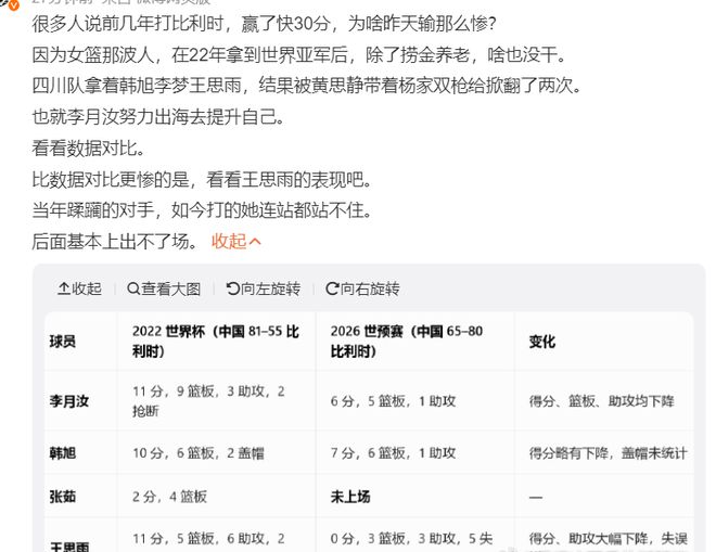 2022年的中國女籃是世界杯亞軍,當時中國隊是81-55狂勝比利時,那支比利時跟這支沒有太大區別,也就是短短四年,女籃從贏比利時26分-輸比利時15分,這個差距為何如此之大?