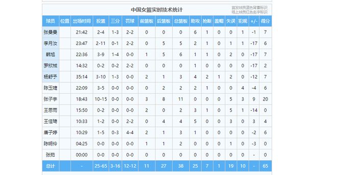 本場比賽,張子宇出戰18分43秒,投籃15中10,獨砍20分11籃板,正負值為+9。其中她的得分數、籃板數、正負值均為全隊最高。